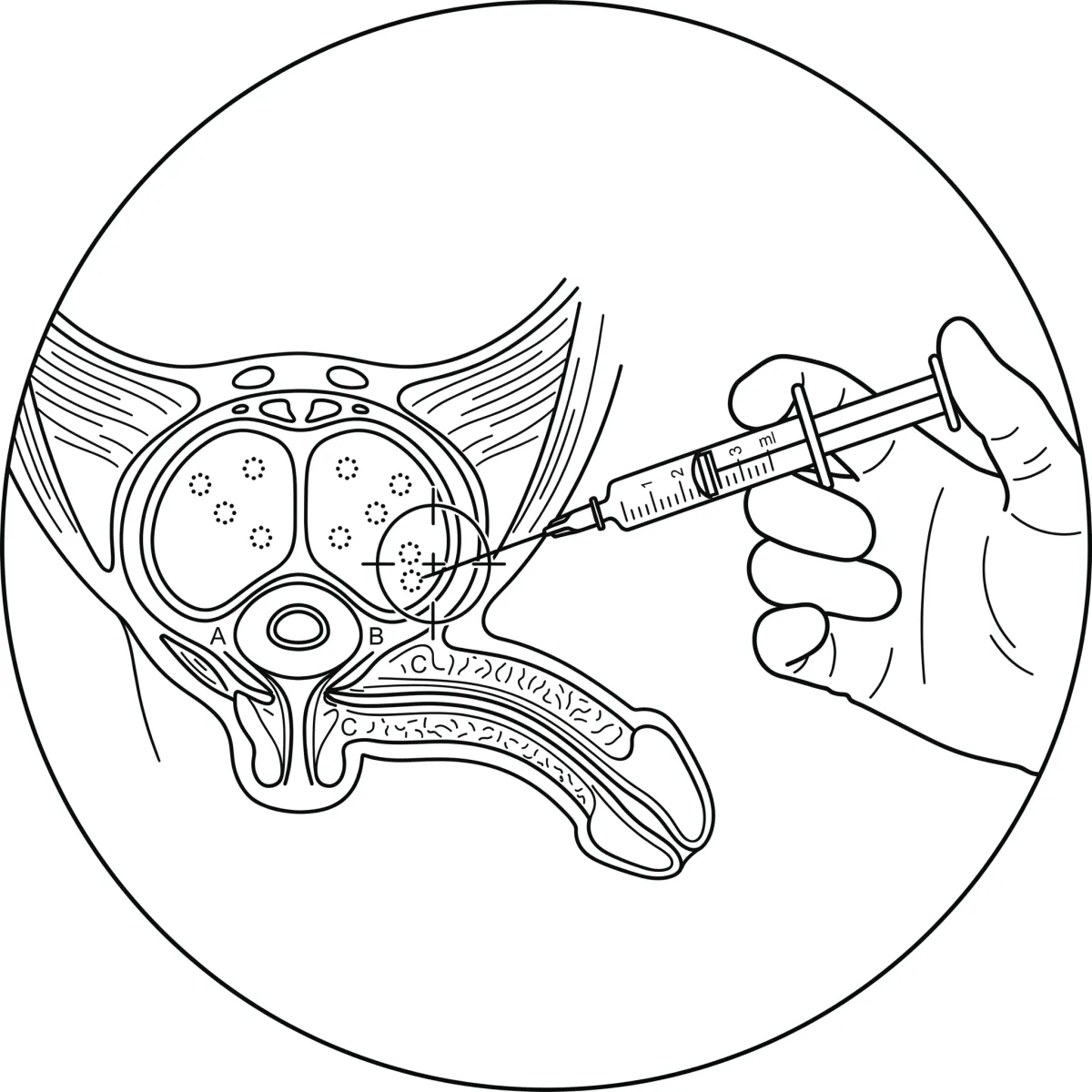 Most patients describe the sensation as mild pressure rather than pain. A topical numbing cream is applied before the procedure and left to take effect for approximately 20 minutes. For patients with a lower pain threshold, a penile nerve block is available on request. The blood draw from your arm is the same as a routine blood test.